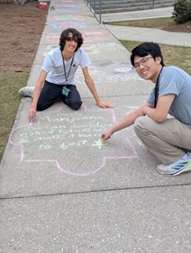 THY used chalk to write facts about drugs in puzzle pieces for students to read while walking into school in the morning.